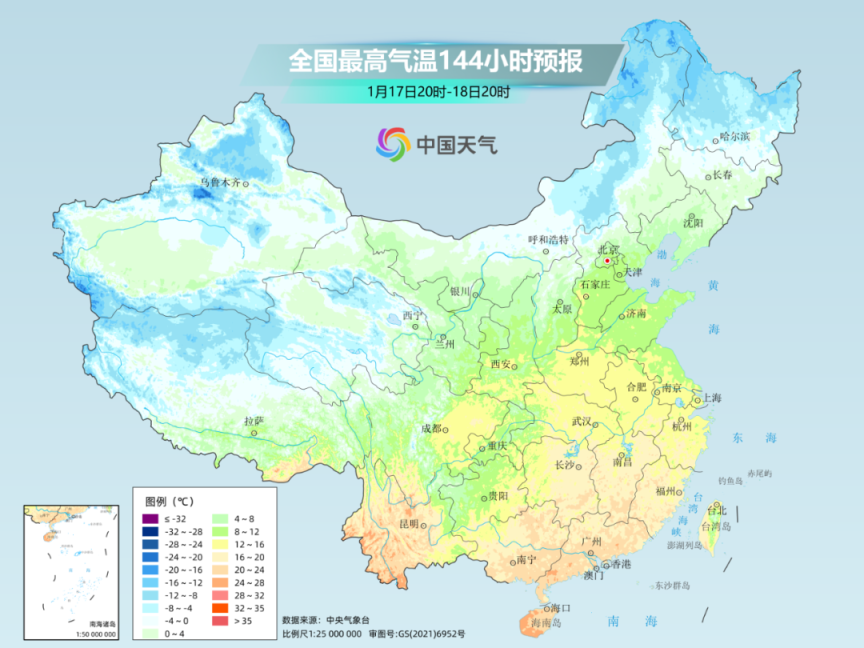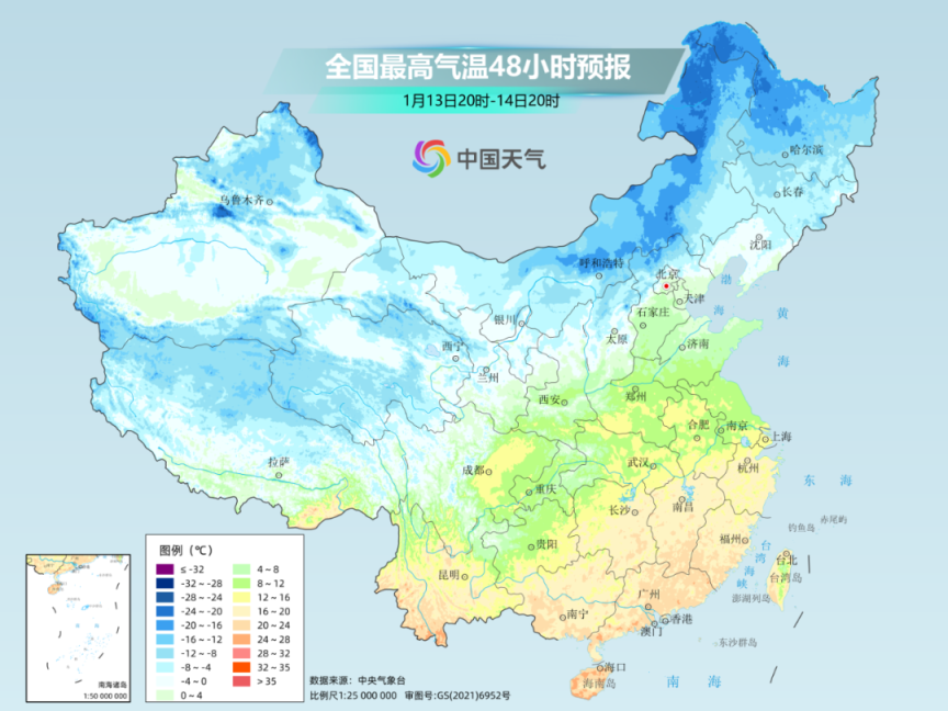 气温将自北向南降至正常或偏低水平、重回“三九”的寒冷,冷暖转折非常突出。北方需关注西北东部、华北部分地区降温最为剧烈,普遍降温4-8℃。14-15日北京、天津、太原最高气温将跌至冰点附近,全天都冰冻感十足。