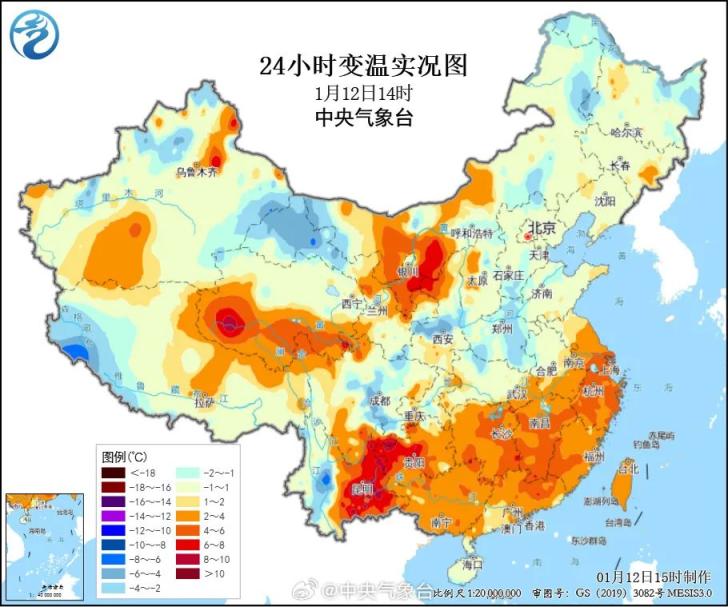 尽管有弱冷空气活动,但由于强度不强+位置偏西,没法撼动强势升温。今天下午,南方大部气温回升明显,尤其云南东部、贵州西部等地较昨天同时次上升6~8℃,局地超10℃!